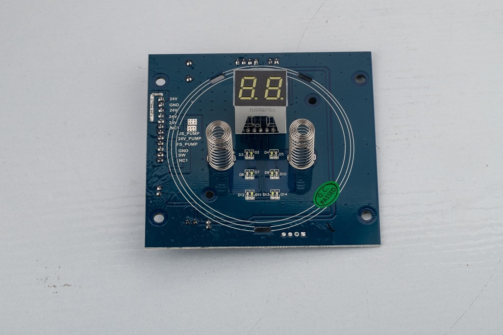 凈水器電控板進行水質(zhì)TDS監(jiān)測、濾芯壽命監(jiān)測,根據(jù)TDS傳感器收集的數(shù)據(jù)顯示當(dāng)前狀況。通過采集高低壓開關(guān)的通斷信號,控制水閥、水泵等部件的工作。