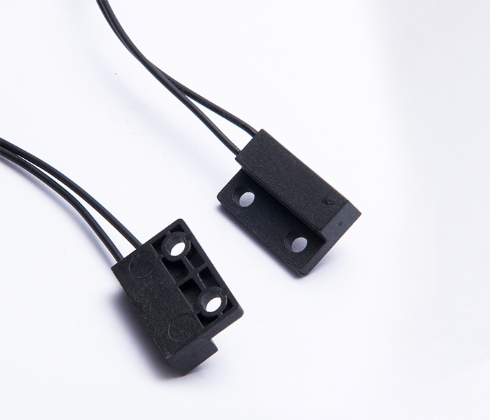 屬性:磁控接近開關(guān)由永久磁鐵(觸發(fā)器部分)和干簧管(感應(yīng)部分)兩部分組成。干簧管又稱舌簧管,其構(gòu)造是在充滿惰性氣體的密封玻璃管內(nèi)封裝2個(gè)或2個(gè)以上軟鐵電極。感應(yīng)部分由磁簧開關(guān)經(jīng)引線連接,定型封裝而成。觸發(fā)器部分由對(duì)應(yīng)的磁場強(qiáng)度的磁鐵封裝于塑膠或合金殼體內(nèi)。當(dāng)兩者分開或接近至一定距離后,引起開關(guān)的接通與斷開,從而感應(yīng)物體位置的變化;它除可以完成行程控制和限位保護(hù)外,還是一種非接觸型的檢測裝置,用作檢測零件尺寸和測速等。